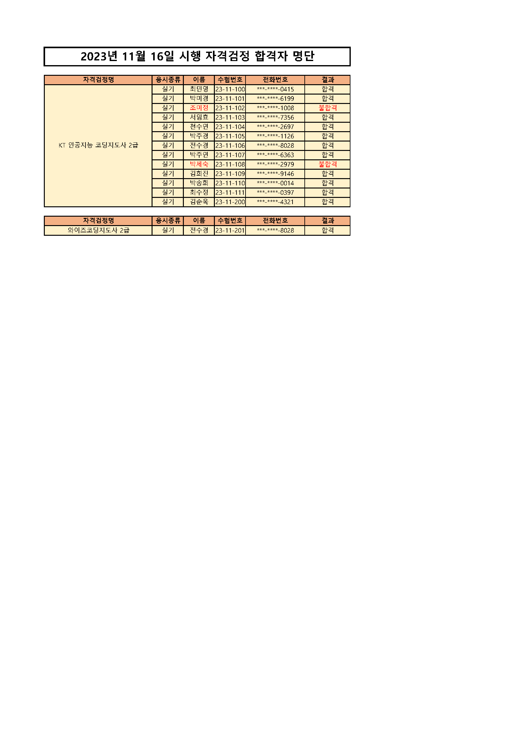 23³â 11¿ù 16ÀÏ ½ÃÇàÇÑ ÀÚ°Ý °ËÁ¤ ÇÕ°ÝÀÚ ¹ßÇ¥